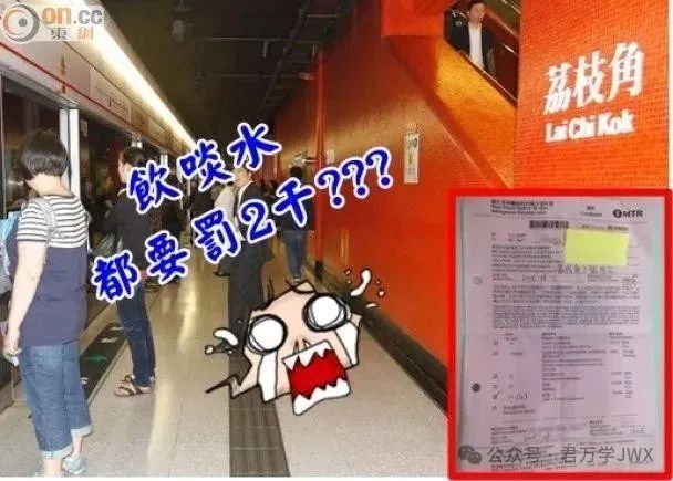 车厢内禁止喝水,违者罚款 2000 港币。
