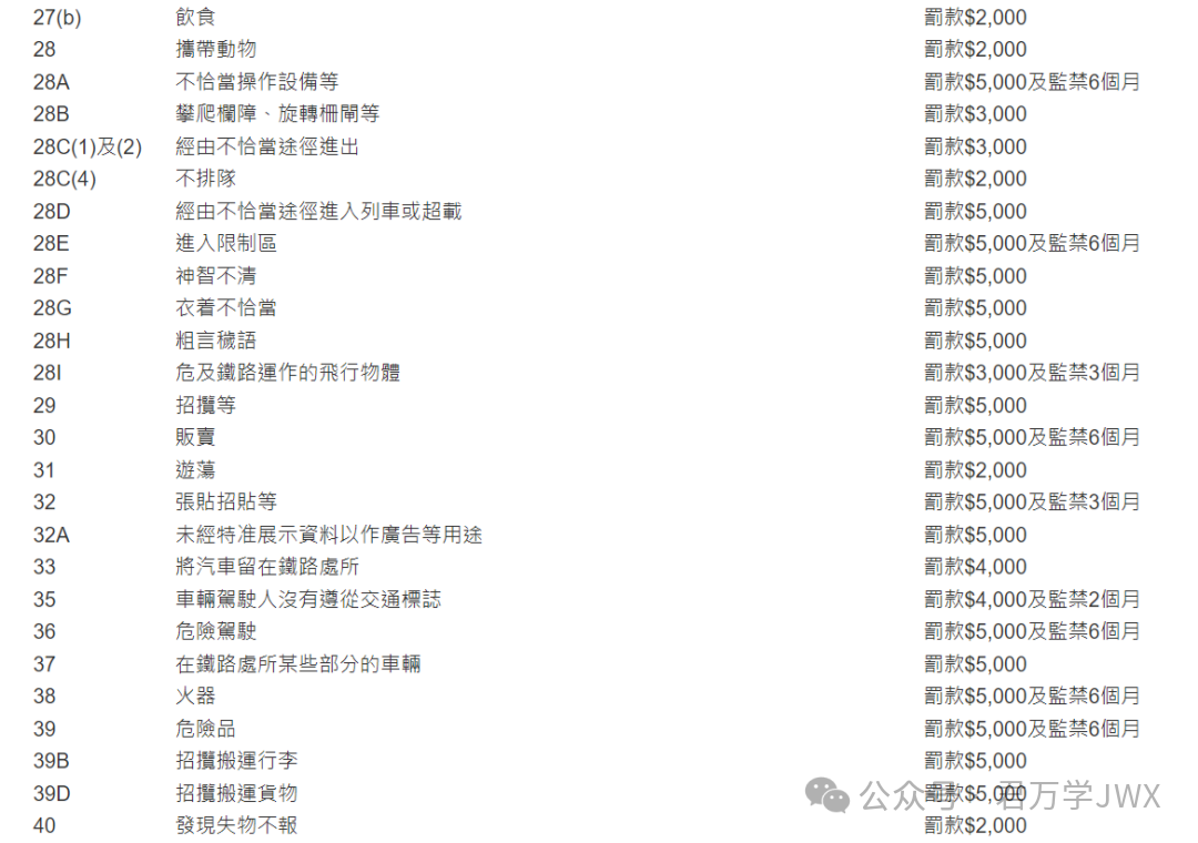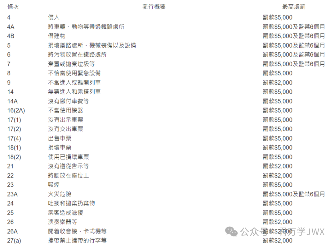 除了以上几条需要重点留意的事项,根据港铁第556章第34條最新规定,港铁还有把脚放在座位上、不排队、扔垃圾、演奏乐器等禁止条例约50条。
